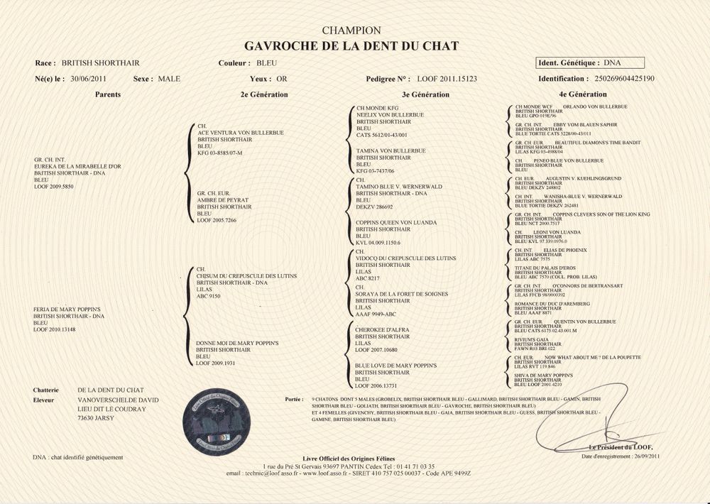 Nom du Père : CH. Eureka de la Mirabelle D'Or / Nom de la Mère : Feria de Mary Poppins