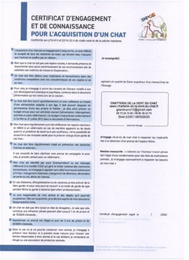 Depuis le 01 octobre 2022, un certificat d’engagement et de connaissance devra être établi 7 jours avant toute adoption d’un chaton pour compagnie.